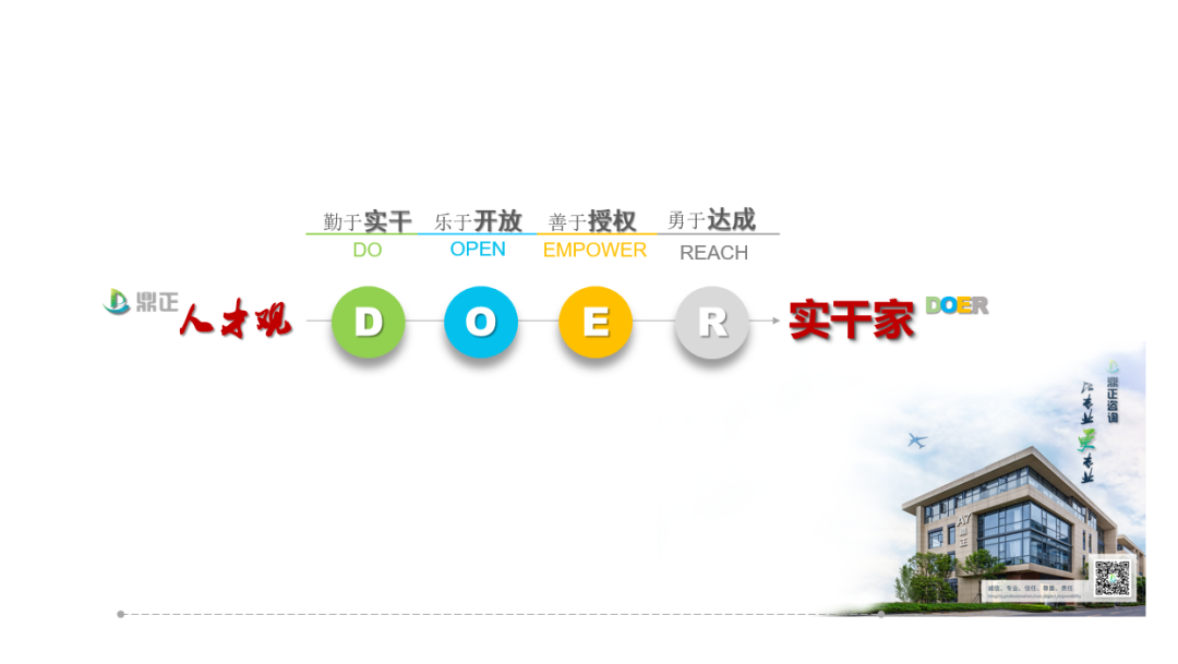 鼎正“DOER實干家”人才觀,是我們對人才認知的基本價值觀,亦是人才發(fā)展成長的路徑,它能具體化指導同事們在工作中“對于自己、對于他人、對于團隊、對于上級”分別能做些什么、該如何去做,從而調動和培養(yǎng)同事們發(fā)展的內驅力和工作的協同性。