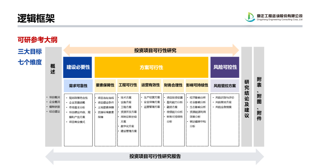 《可行性研究報(bào)告編制大綱(2023年版)》的頒布實(shí)施,對(duì)于我國(guó)新時(shí)代投資項(xiàng)目科學(xué)決策、推動(dòng)實(shí)現(xiàn)高質(zhì)量投資具有里程碑意義,鼎正作為一家綜合性咨詢企業(yè),多年來(lái)深度服務(wù)湖北省及下屬多個(gè)縣市區(qū)的經(jīng)濟(jì)建設(shè),在全過(guò)程工程咨詢、投融資咨詢、專項(xiàng)債咨詢、國(guó)債咨詢、PPP咨詢等,積累了良好的理論基礎(chǔ)與品牌口碑,并從咨詢實(shí)踐中摸索出一套“向前、向后、向綠色”的高質(zhì)量咨詢產(chǎn)品線,能夠提供高質(zhì)量全方位的咨詢服務(wù)。