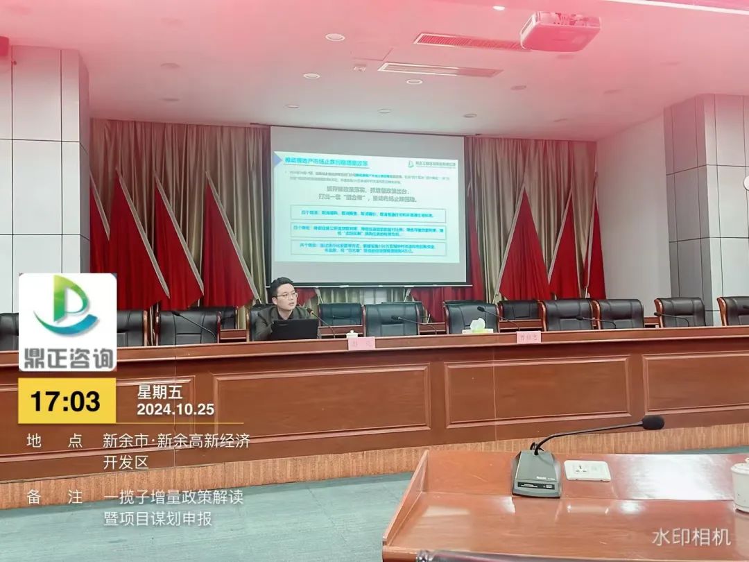 自9月下旬以來,國務院等多部門密集發(fā)布了一攬子增量政策,并引發(fā)了社會各界的廣泛關注。為搶抓增量政策窗口期,提升地方政府項目謀劃儲備質(zhì)量和項目謀劃水平,精準擴大有效投資。10月25日,鼎正副總經(jīng)理彭亮受邀為新余高新區(qū)政府作《一攬子增量政策解讀暨項目謀劃申報》的專題培訓。