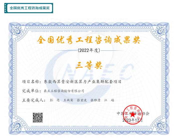 東數(shù)西算貴安新區(qū)算力產(chǎn)業(yè)集群配套項(xiàng)目榮獲全國優(yōu)秀工程咨詢成果獎(jiǎng)三等獎(jiǎng)。