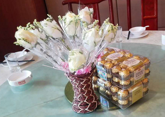 男神們?yōu)榕駛儷I上鮮花和禮物