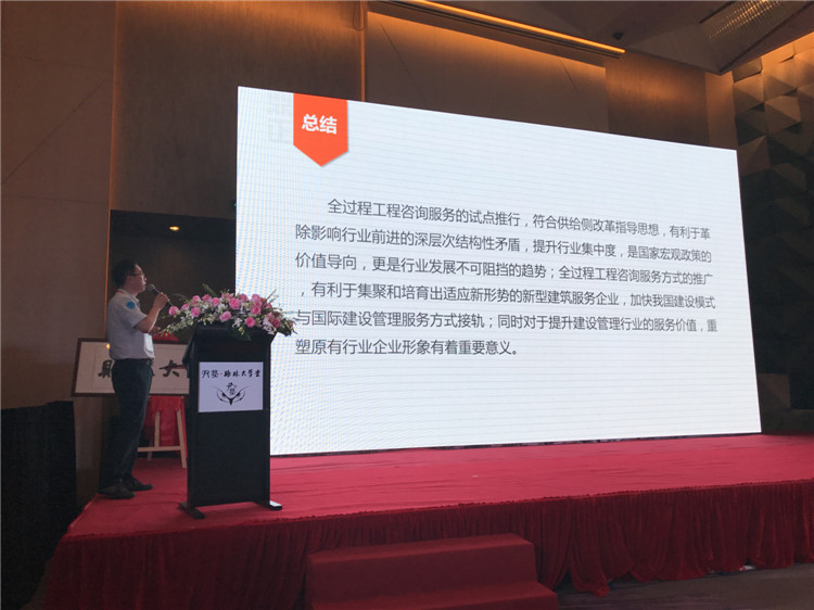 在主題演講環(huán)節(jié)中,我司董事長王雁然從風(fēng)口下的造價咨詢企業(yè)發(fā)展觀察、全過程工程咨詢服務(wù)的演變、全過程工程咨詢服務(wù)的核心價值、全過程工程咨詢服務(wù)的實現(xiàn)路徑、鼎正工程咨詢的探索與實踐五個部分全面詳實的針對全過程工程咨詢的思考與實踐發(fā)表演講。