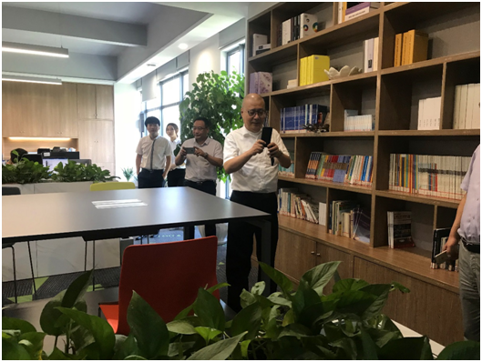 尹教授及各位來賓在我司董事長王雁然先生的陪同下,參觀了我們的辦公樓。當尹教授來到綠意盎然、滿室書香的二樓閱覽室時,還拿出手機連連拍照,每一層看完后尹教授贊不絕口,和陪同人員說:“鼎正的環(huán)境無論是硬件設(shè)備設(shè)施,還是裝修風格都領(lǐng)先于同行業(yè) ”。