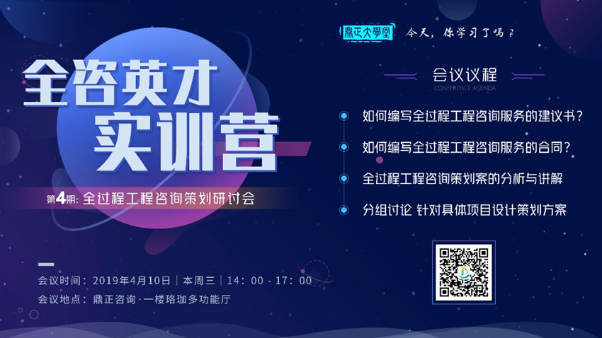 4月10日下午兩點(diǎn),全咨英才實(shí)訓(xùn)營(yíng)第四期—全過程工程咨詢策劃研討會(huì)在我司一樓珞珈多功能廳隆重開講。